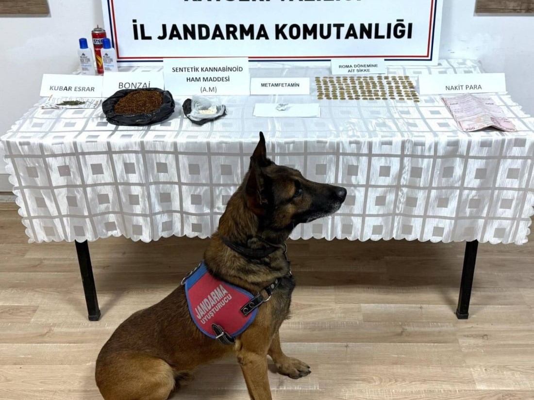 Edinilen bilgiye göre, 25 Eylül 2025 tarihinde D.G. isimli şahsın ikametinde ve bahçesinde, NSM, İstihbarat Şube Müdürlüğü ve Kocasinan İlçe Jandarma Komutanlığı ekiplerince adli arama yapıldı. Arama sonucunda çok sayıda uyuşturucu madde, tarihi eser niteliği taşıyan sikke ve suçtan elde edildiği değerlendirilen para ele geçirildi.